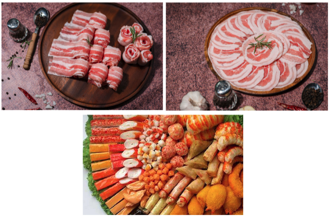 ผลิตภัณฑ์เนื้อสัตว์ เอนไซม์ทรานส์กลูตามิเนส ทำหน้าที่เหมือนกาวติดเนื้อเพื่อเชื่อมติดชั้นเนื้อเข้าด้วยกัน จึงสามารถใช้ในการเชื่อมเนื้อชิ้นเล็กๆ ที่ได้จากการตัดแต่งเนื้อสัตว์หรือเศษเนื้อติดกระดูกติดให้เชื่อมกันเพื่อการผลิตเนื้อขึ้นรูป