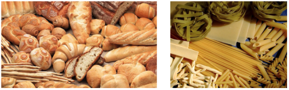 ผลิตภัณฑ์ขนมอบ และแป้งสาลี กลูเตนเป็นโปรตีนในแป้งสาลีที่สามารถเชื่อมกันได้โดยเอนไซม์ทรานส์กลูตามิเนส การเชื่อมพันธะ G-L ของโปรตีนในแป้งสาลีในระหว่างการเตรียม dough จะช่วยทำให้ dough มีความสามารถในการอุ้มน้ำดีขึ้นและใช้พลังงานในการนวดลดลงทำให้ได้ขนมปังที่มีปริมาณสูงขึ้นและมีเนื้อสัมผัสที่ดี นอกจากนี้ในการผลิตบะหมี่และพาสต้าจะมีผลช่วยป้องกันไม่ให้เนื้อสัมผัสมีคุณภาพด้อยลงหลังการต้ม